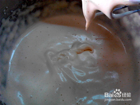 5、用打蛋器 搅打至泡沫浓稠,滴落的蛋糊不会马上消失,
