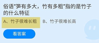 1、第一题:俗语”笋有多大,竹有多粗”指的是竹子的什么特征?