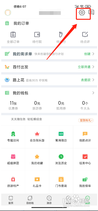 1、打开途牛旅游APP进入我的页面,点击“设置”进入,如图所示。