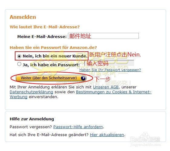 3、进入登录界面,新用户注册,已注册用户登录,点击Weiter进行下一步