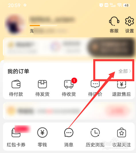 2、在个人中心界面,点击进入全部订单。