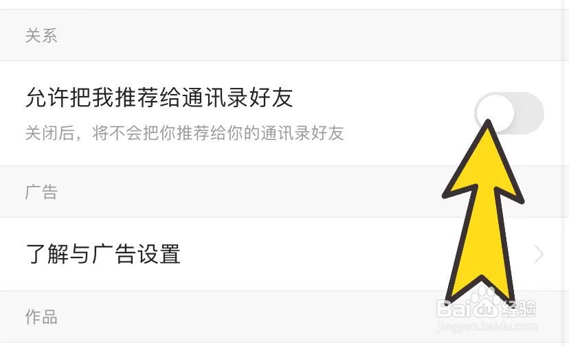 进入隐私设置中找到图片中箭头所指的位置 关闭即可。