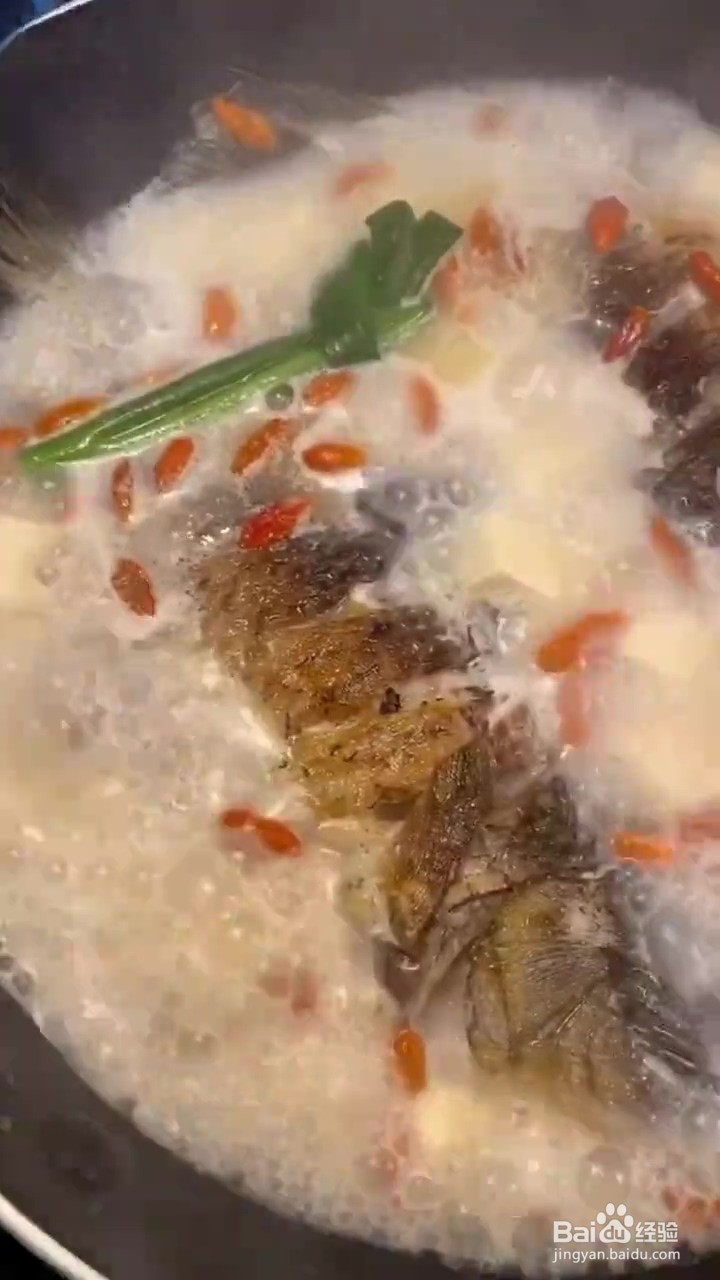 1、鲫鱼处理干净花刀 锅中放油 油热放入鲫鱼小火慢慢煎至金黄 加入开水