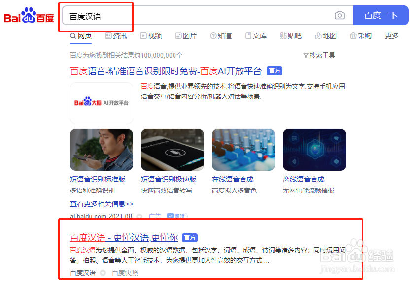 1、第一步打开百度浏览器,然后搜索百度汉语,如图所示。