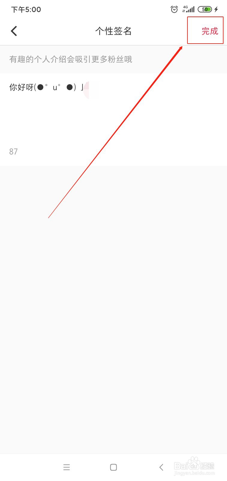 2、输入你要的个性简介,点击【完成】即可。