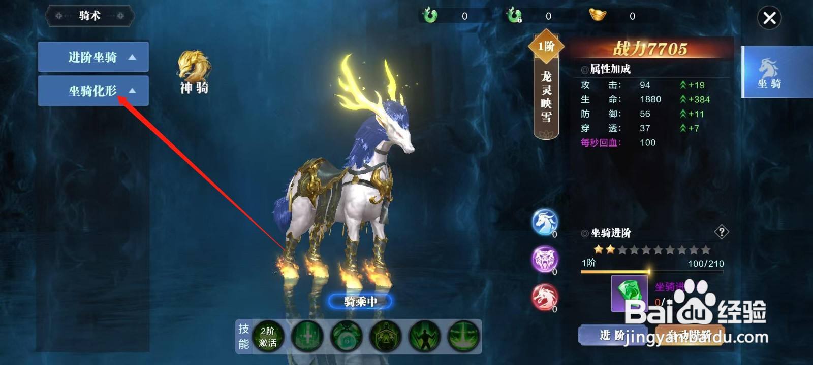 1、首先,打开万剑至尊,点击页面上的【坐骑化形】。