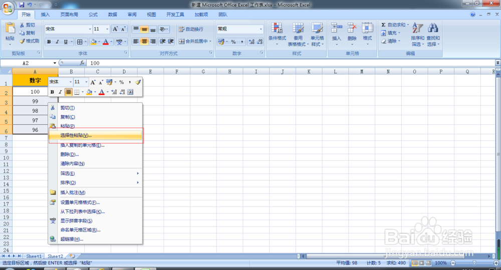 3、选中要调整的单元格区域,【右键】点击【选择性粘贴】
