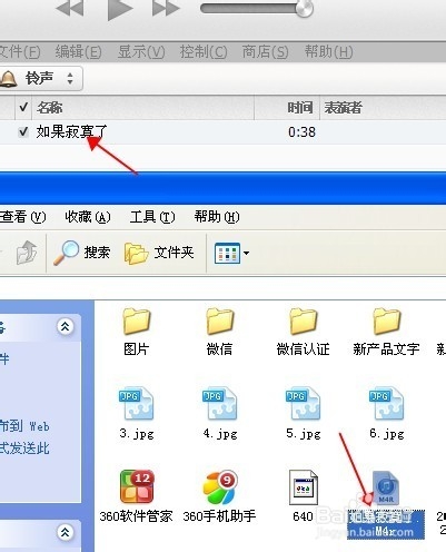 10、然后将电脑文件中的歌曲,直接用鼠标拖进“铃声”中
