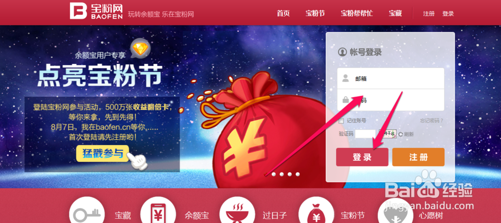1、进入到宝粉网。然后登录帐号,如没有的话就进行注册,只支持支付宝账户注册哦。