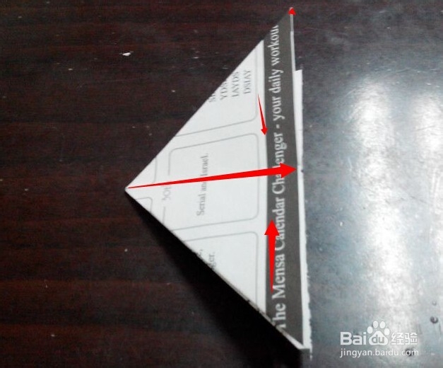 4、将上面三角形一边沿虚线折(前面两角沿虚线向里折),另一半对半折行成鱼的尾鳍.