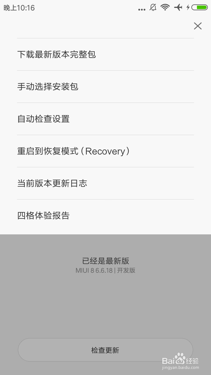 4、然后打开手机,选择系统更新,右上角打开后选择手动选择安装包,然后找到自己储存的压缩包,更新就可以了