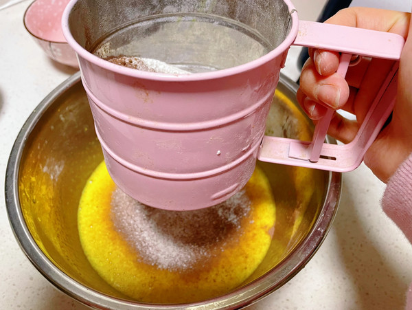 5、可可粉,玉米淀粉,低筋粉过筛到蛋黄里