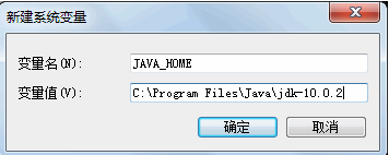 4、此时会弹出“新建系统变量”对话框。在“变量名”文本框中输入 JAVA_HOME,在“变量值”文本框中输入 JDK 的安装路径,最后单击“确定”按钮,保存 JAVA_HOME 变量。