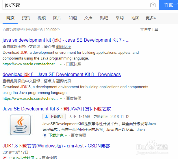 3、若没安装,则直接去下载安装(推荐下载1.5版本以上JDK)