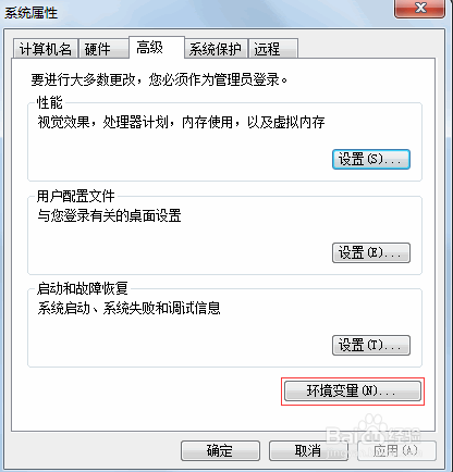 2、从桌面上右击“计算机”图标,从快捷菜单中选择“属性”命令,在打开的“系统属性”对话框中单击“环境变量”按钮