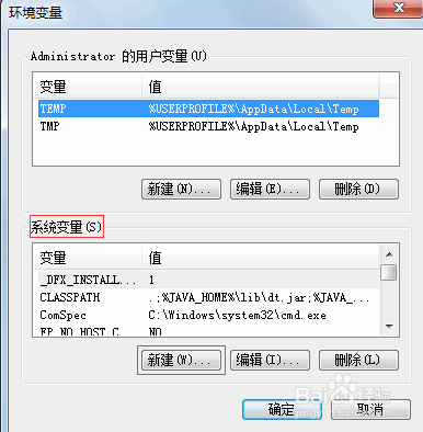 3、从弹出的“环境变量”对话框中单击“系统变量”列表框下方的“新建”按钮