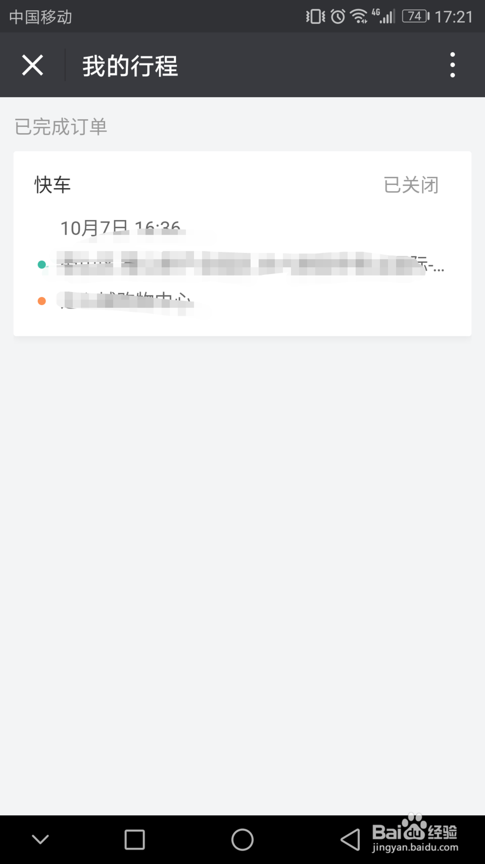 2、在行程里面就有你最近用过滴滴的行程,也可以看到你上一次行程,如果没付款是不能叫滴滴的,一定要付了上一次行程的费用,才可以再次使用滴滴。