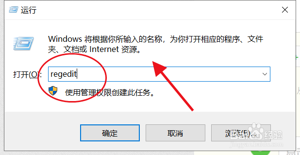 1、首先用“Win+R”组合键打开运行程序,输入“regedit”进入注册表编辑器娃况强,如图所示