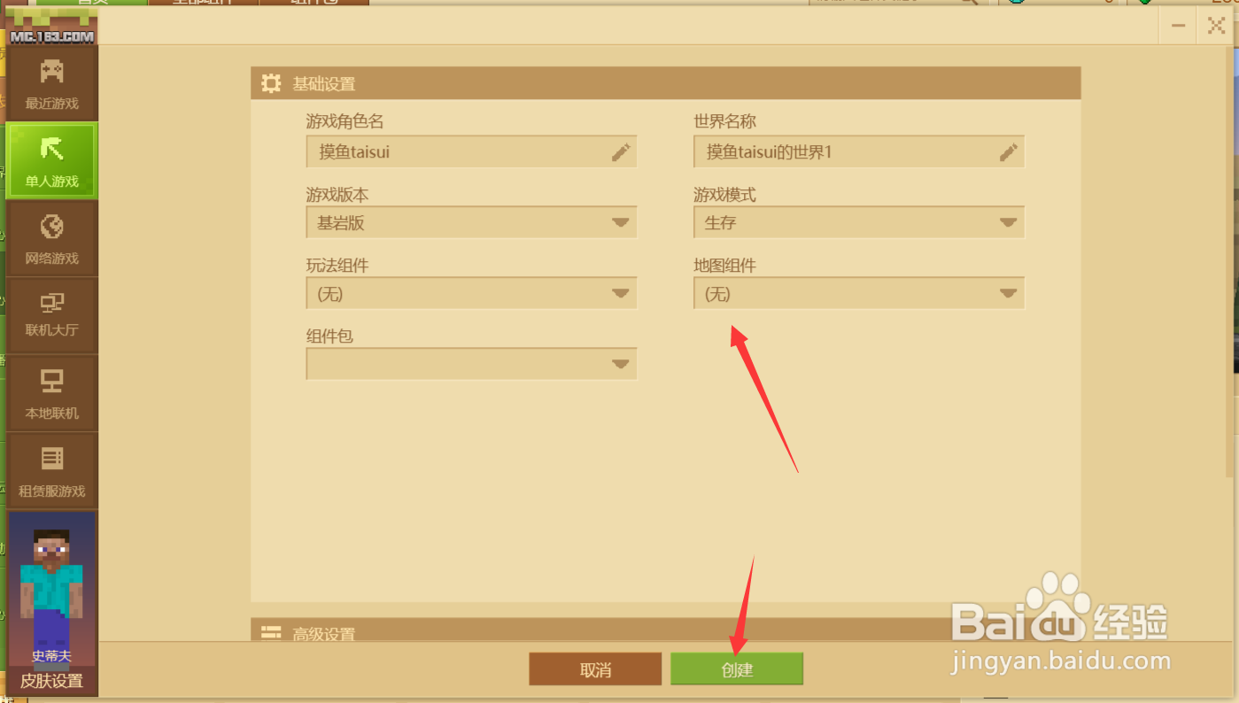 6、找到我们创建好的地图,点击启动即可进入游戏。