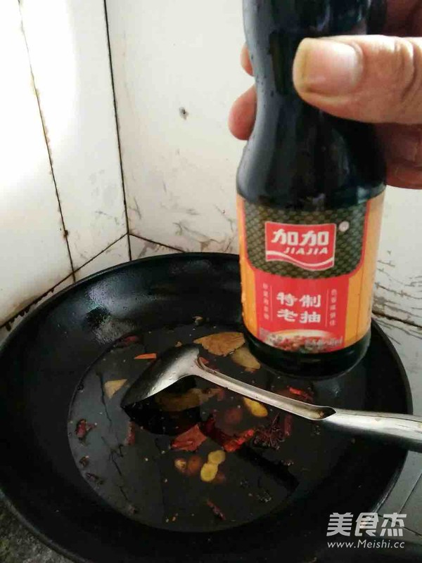 7、油锅烧热放入姜蒜八角等香料炒香后加入水