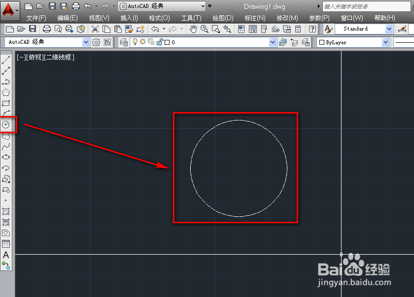 1、打开cad,使用圆工具绘制一个圆,如下图。