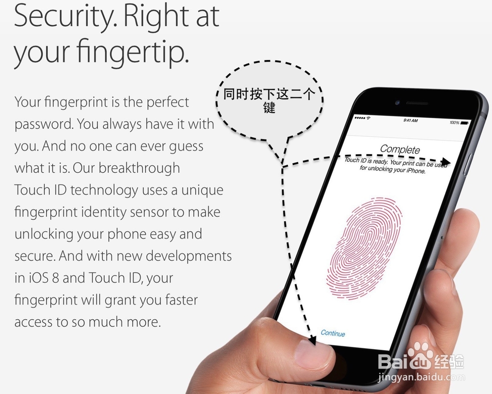 3、如果不是由于没有电导致的黑屏无反应的话,此时我们可以尝试同时按下 iPhone “主屏Home与电源”键,保持不放,看看手机屏幕是否会有反应。