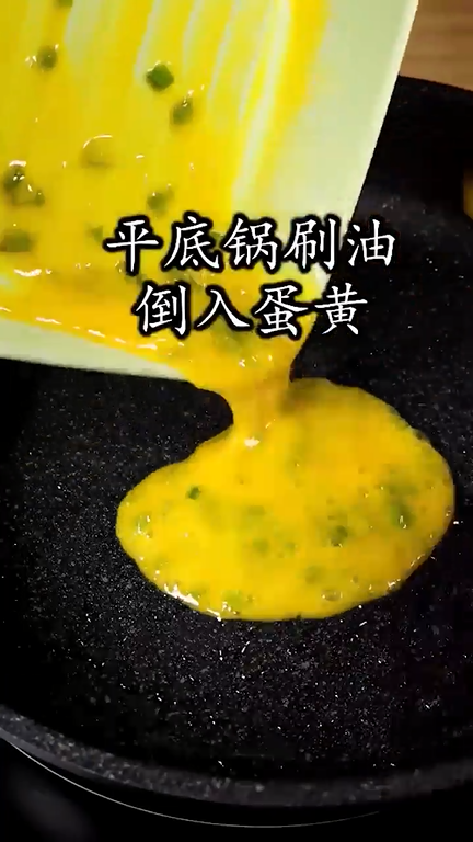 5、起锅刷油,下入蛋黄煎成薄饼。