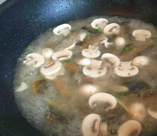 准备材料:黄鳝、火腿、蘑菇、色拉油、料酒、盐、白胡椒粉、姜片、葱、蒜瓣。