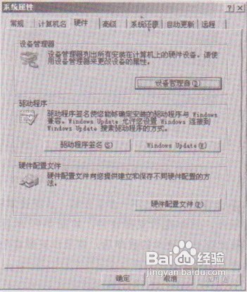 1、步骤1:右击【我的电脑】图标,执行【属 性】命令,在xp系统下载弹出的对话框中选择【硬件】选项卡, 单击【设备管理器】按钮。如图(1)所示。