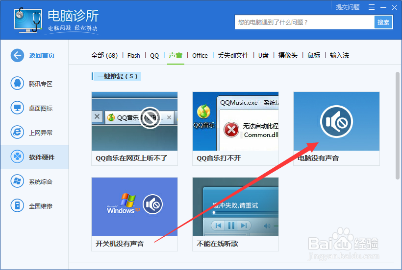 1、首先确保你的电脑没有处于静音状态,假如你的电脑是插入了耳机,将耳机拔掉试试看是不是还没有声音,自己多试试看是不是自己本身的耳机或者电脑音箱有问题。