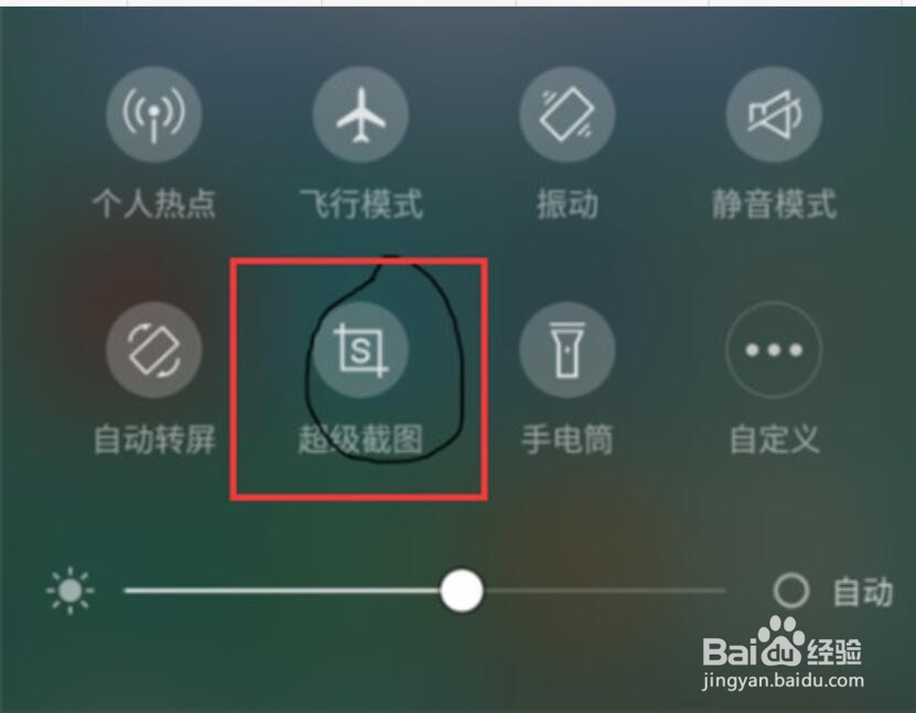 1、下拉手机状态栏,找到【超级截图】选项,点击该选项