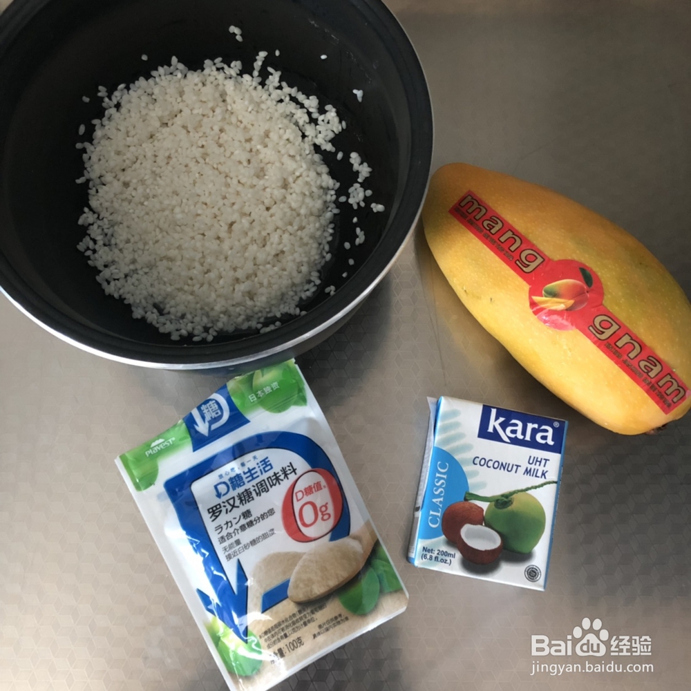 6、将糯米饭和芒果摆盘,淋上适量余下的椰浆即可!