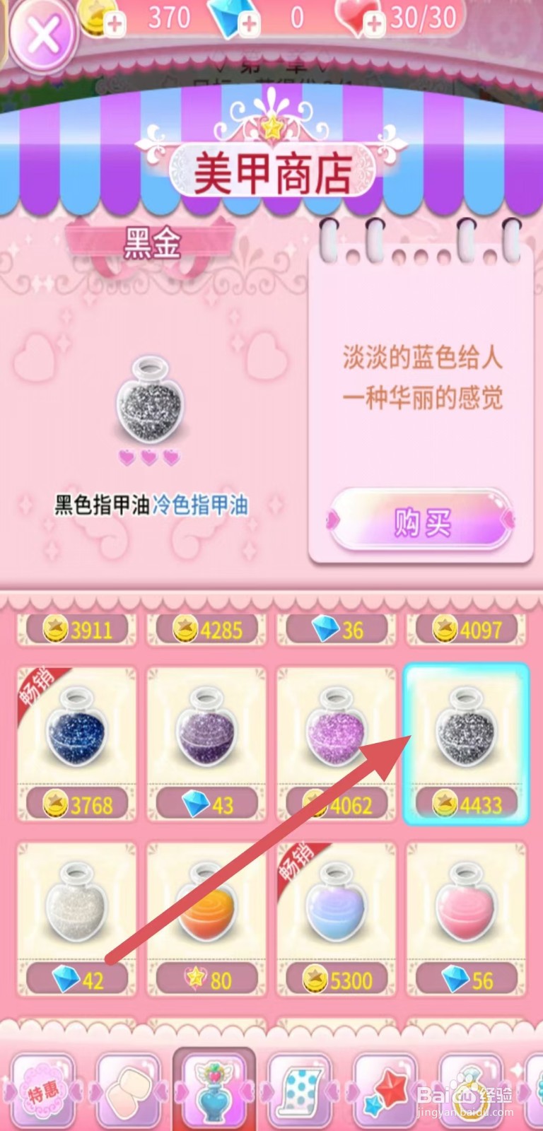 2、第二步:进入美甲商店界面,点击【黑金】图标