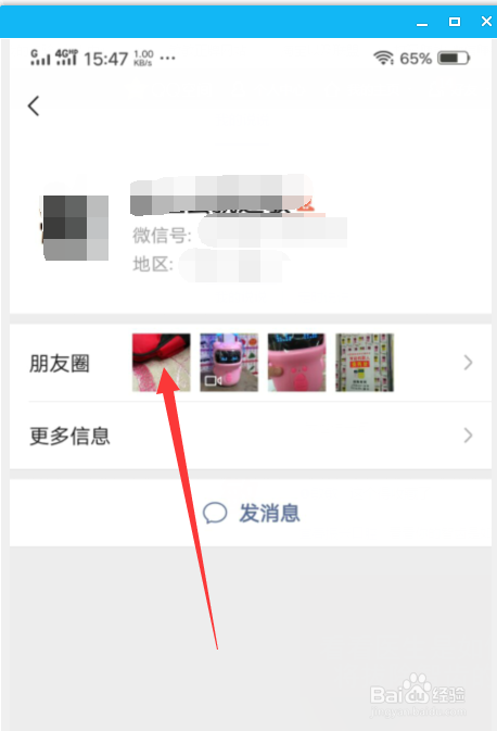 5、再点击箭头指的“朋友圈”这样就进入了自己的朋友圈了。