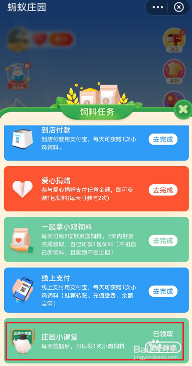 1、进入支付宝蚂蚁庄园页面 ,点击下方【领饲料】
