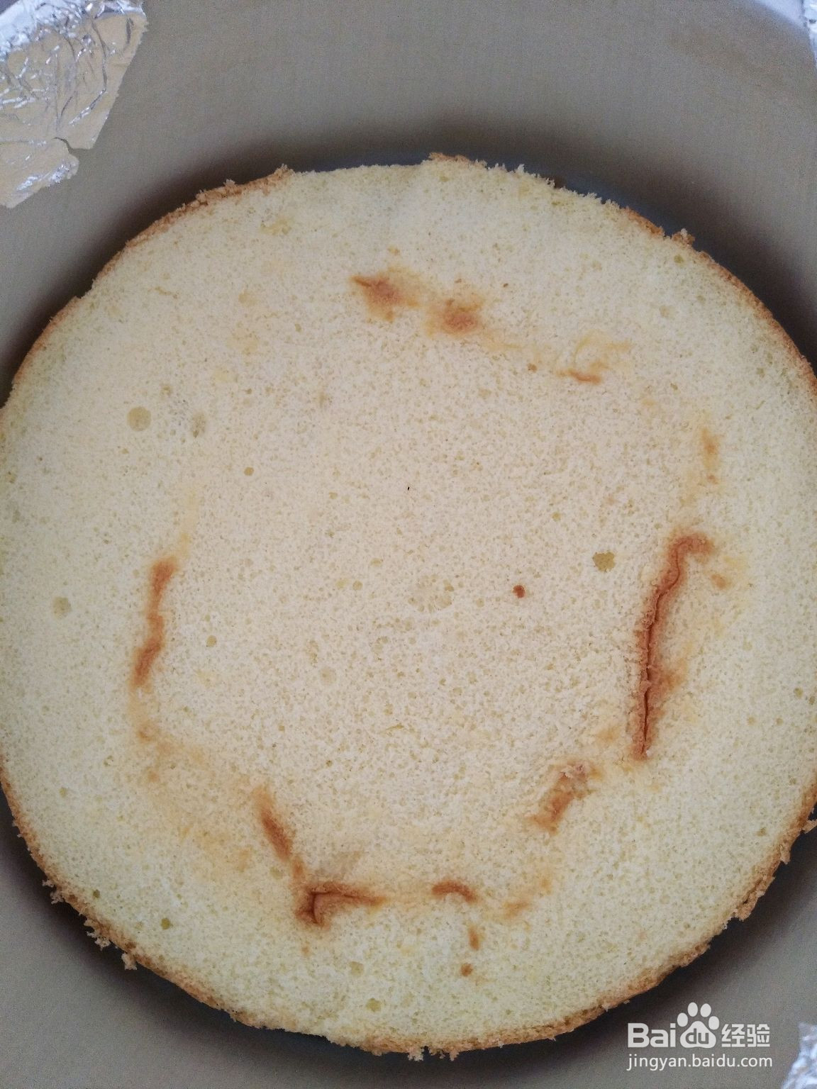 2、先放一层8寸戚风蛋糕片,没有蛋糕的也可以用饼干碎加黄油压实做底,但这个热量高。