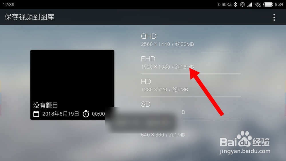 6、点选一个分辨率,即你想导出到手机上的分辨率,如下图那样。