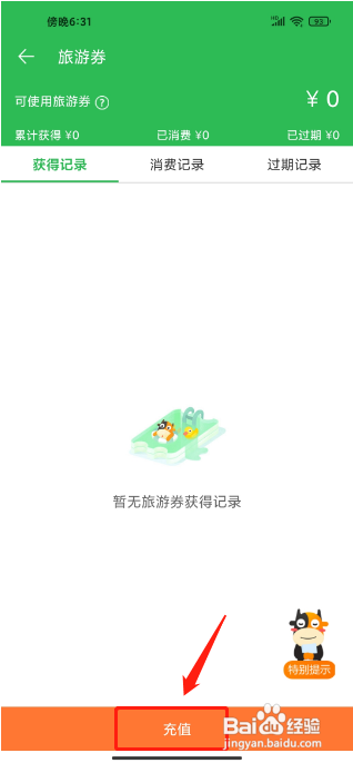 4、进入旅游券充值,输入旅游券编号、旅游券密码,点击【确认充值】。