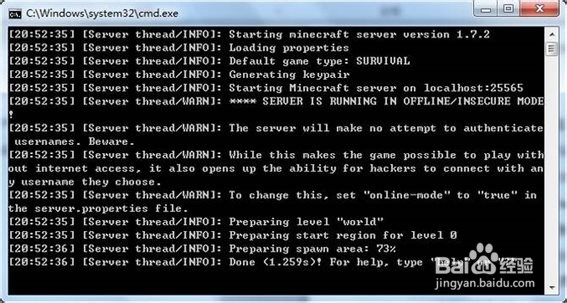2、开服执行启动。运行开服文件。如果没有报错表示开服完成。
