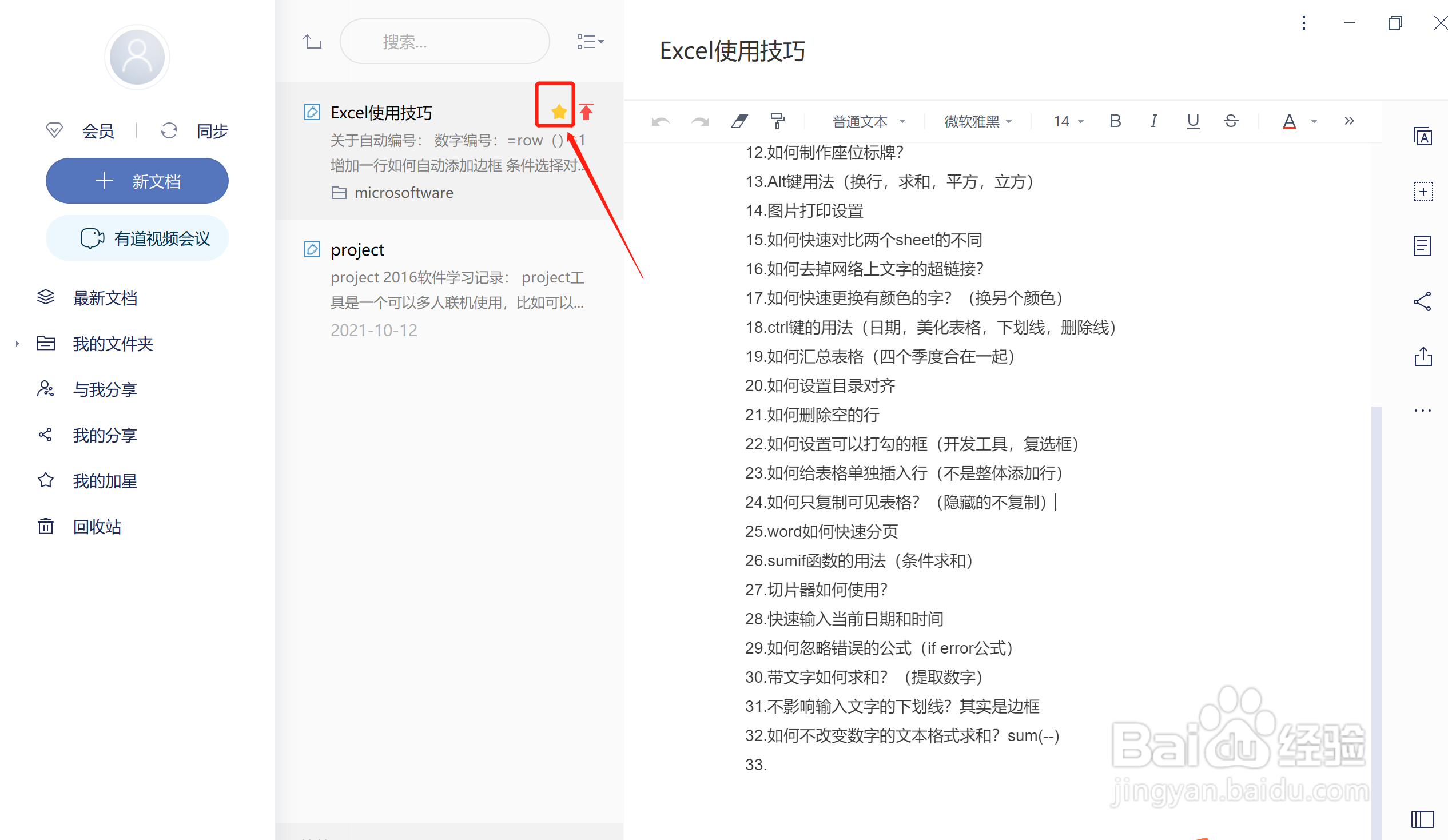 有道云笔记如何给文档加星?