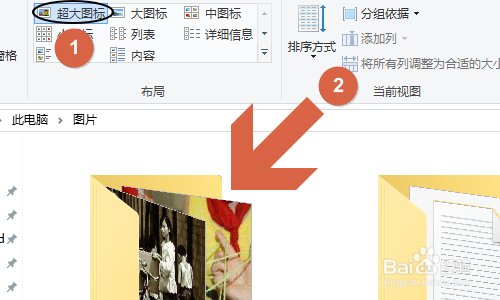 2、如果有些小伙伴喜欢大图标,那么可以直接点击该页面上方的“超大图标”,这样文件的排列形式就会发生变化,见下图...