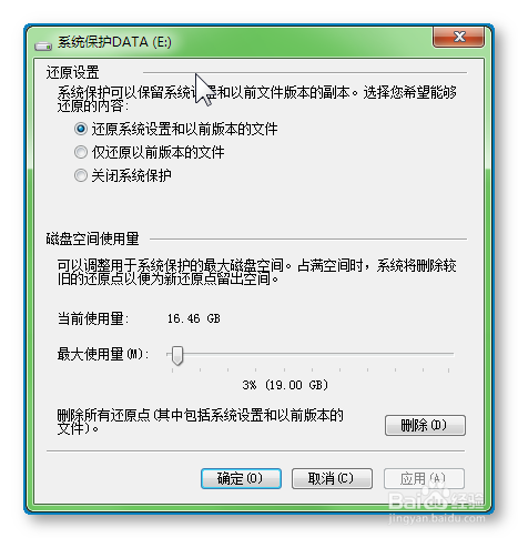 下面的滑块,“最大使用量”选择差不多10%就行了,点确定,这个量决定了你能够存多少天备份,容量越大,存的时间越久。