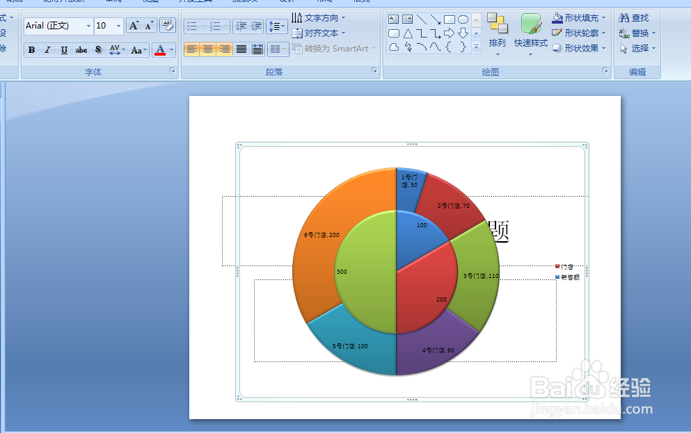 6、通过以上步骤,EXCEL中插入的饼图就复制到了PPT中,如下图所示:
