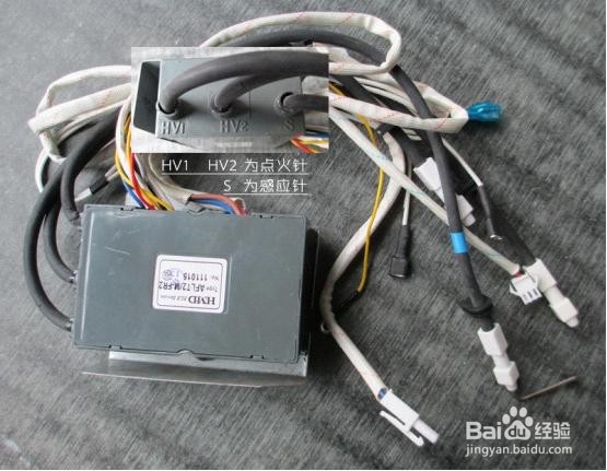 如果没有打火,就需要检查打火部分了,如下图,太专业,如果有万用表,建议量一下电池到打火器的电线通不通。如果不通则更换电线。