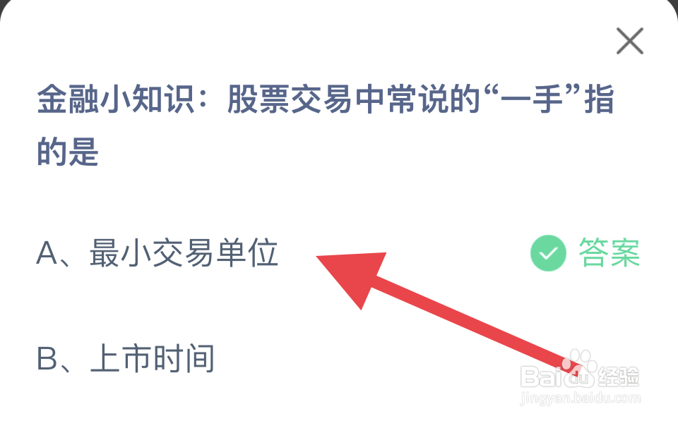 蚂蚁庄园2024.11.20金融股票交易“一手”?
