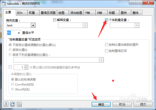 4、去掉勾选上个体数量变量选项之后,点击确定