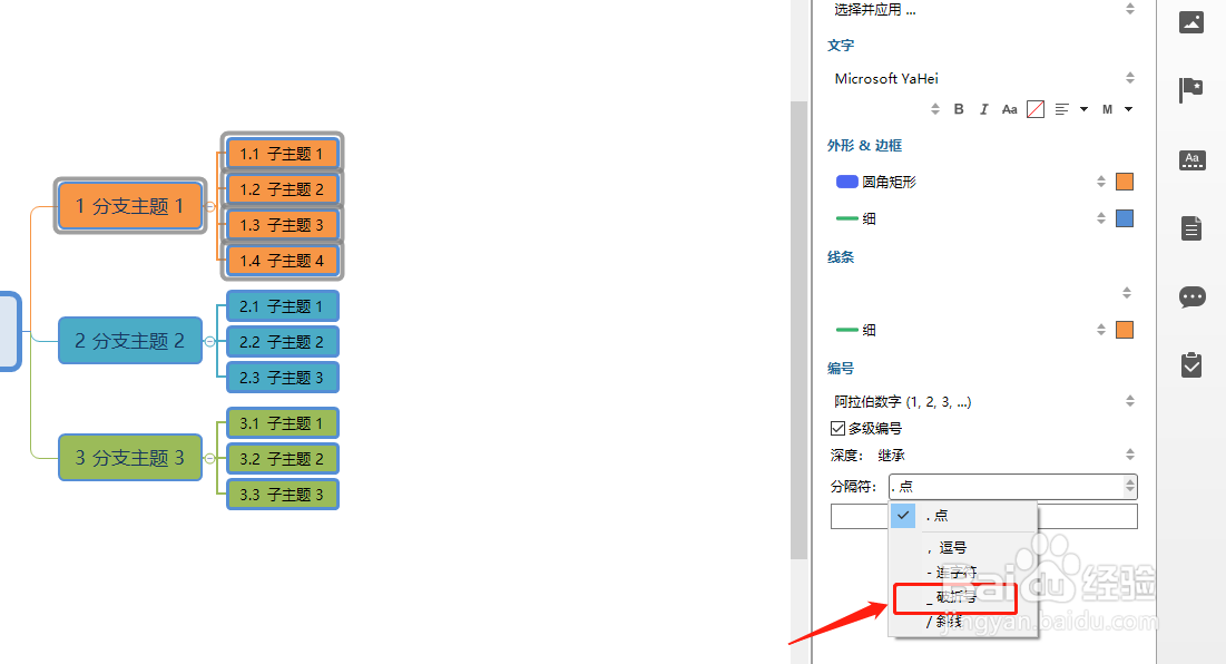 3、编辑好主题内容,选定分支主题1,点击【格式】按钮