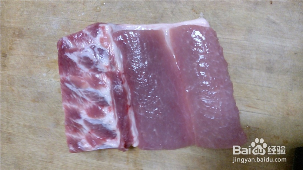 1、在超市里买来一块带皮的肉,这种程度一般都不敢尝试,实在是肥的有点多,不过通过以下的做法就可以去掉一部分肥油