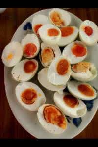 4、将盐水倒入装鸭蛋的坛子里,密封,再等一个月左右就可以吃了。