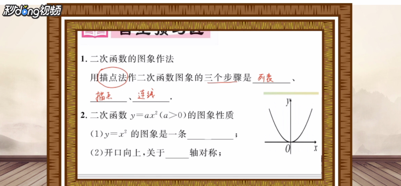 2、以y=ax²(a≠0)为例二次函数的图像与性质。